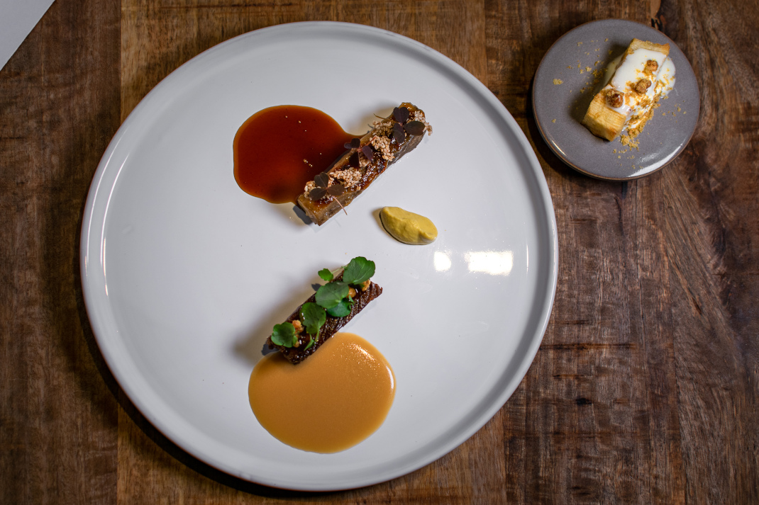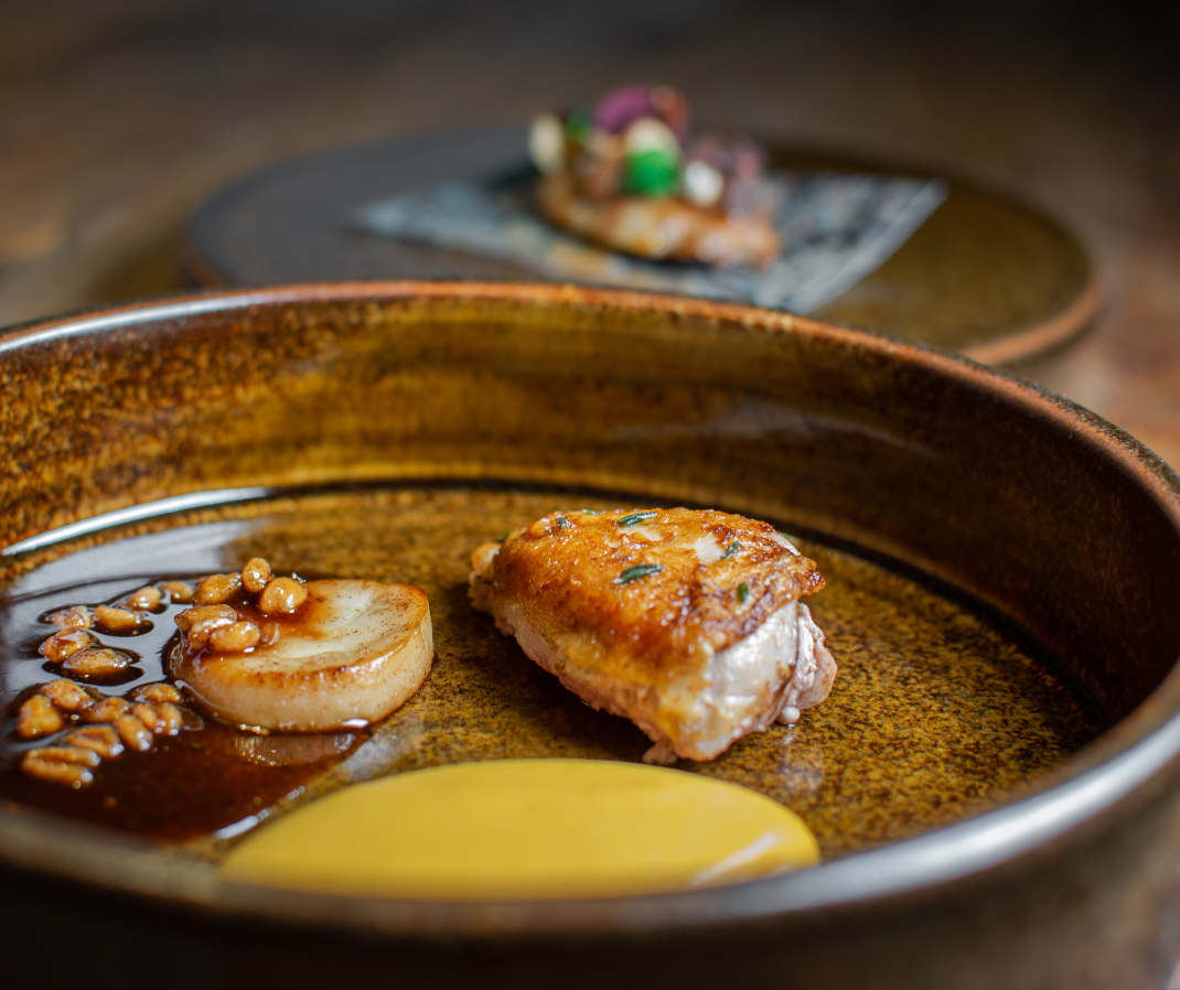 Έτσι εδώ ένα γκουρμέ μακαρόν παντζάρι με καπνιστό σκουμπρί, tartar μαγιάτικου, yuzu gel, γρανίτα αγγούρι και τζιν τόνικ συνδυάζεται με ένα μαμαδίστικο απαλό φρικασέ από σπανάκι, μέσα στο οποίο υπάρχει ένα μελάτο αβγό ορτυκιού και αβγά από κυκλοπέτριδα, ή ένα ορτύκι με πικάντικη σάλτσα από πιπέρι Σετσουάν, μύρτιλα και αρμπαρόριζα ή ένα μπουτάκι κονφί σε ελαιόλαδο με καπνιστά κάσιους και τσάτνεϊ χουρμά με κύμινο.