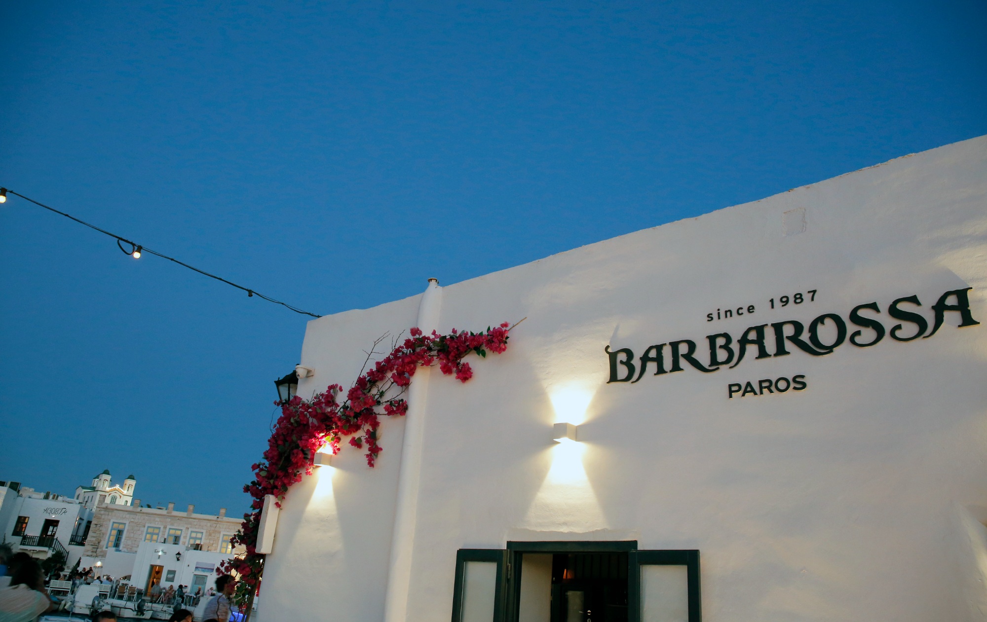 Barbarossa: Ένα εστιατόριο πληθωρικό όπως και η προσωπικότητα του ιδιοκτήτη Ευγένιου Χαμηλοθώρη, σε φέρνει σε ατμόσφαιρα 90’s με δυνατή μουσική, διεθνή σελέμπριτι στα τραπέζια, 20 άτομα προσωπικό στο σέρβις, 150 ετικέτες κρασιού -ανάμεσά τους και 20 σαμπάνιες. Ο έμπειρος σεφ Δημήτρης Νίκολης, διαχειρίζεται με άνεση τα φρέσκα ψάρια και τα θαλασσινά στήνοντας νόστιμα πιάτα με γκουρμέ φινίρισμα περιλαμβάνοντας στο μενού και παραδοσιακές συνταγές του νησιού. Ξεχωρίζει το χταπόδι σιγομαγειρεμένο με μέλι, κρασί μαρσάλα και καραμελωμένα κρεμμύδια, το φρικασέ σφυρίδας με άγρια παριανά χόρτα, τα ψητά χτένια, η αχινομακαρονάδα. Θα εντυπωσιαστείτε από τη γερή ποικιλία σε σούσι και ιδιαίτερα από τα inside out. Μαγική η τοποθεσία του εστιατορίου καθώς βλέπει στο εκκλησάκι του Αγίου Νικολάου και στο ενετικό κάστρο. Απαραίτητη η κράτηση.