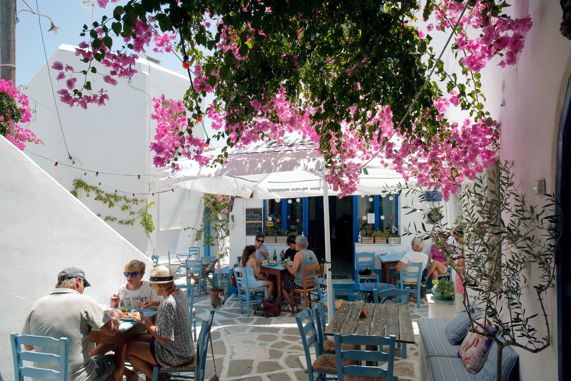 Η ταβέρνα της Χαρούλας: Έχει, και τι δεν έχει, αυτή η ταβέρνα που στρώνει τραπέζια στην πλατεία κάτω από δύο θεόρατες μουριές. Η κ. Χαρούλα μαζί με τον γιο της Ειρηναίο και με τη βοήθεια του αγαπημένου της συζύγου Νίκου (είναι παντρεμένοι 56 ολόκληρα χρόνια και δηλώνουν ερωτευμένοι όπως την πρώτη μέρα που γνωρίστηκαν) ετοιμάζουν το πανόραμα της παριανής κουζίνας: τους καλύτερους ντοματοκεφτέδες, μπιφτέκι από κουνέλι, μυαλά πανέ, αμελέτητα στο τηγάνι, αρωματικούς μαραθόπιτες, καλογεράκι (μελιτζάνα γεμιστή με κοτόπουλο τυριά και σάλτσα ντομάτα), κολοκυθολούλουδα γεμιστά και τηγανητά, και πολλά άλλα. Τα περισσότερα λαχανικά είναι δικά τους, τα κρεατικά ντόπια ή από τη Νάξο (22840-41440)