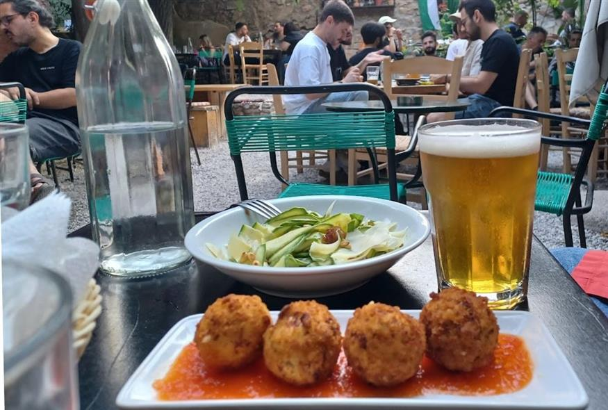 Την «Αυλή» την θυμούνται οι παλιοί Εξαρχιώτες και Εξαρχιώτισσες από τις αρχές της δεκαετίας του 1980, πολύ πριν μετατραπεί σε Γευσηπωλείον – Αυλή κατά τα εξευγενιστικά ήθη της εποχής μας. Βρίσκεται στην οδό Μεθώνης, τον πεζόδρομο των Εξαρχείων που με τα χαμηλά σπίτια του ξυπνάει θύμησες παλιάς Αθήνας, αλλά και μνήμες μιας έντονα ροκ και πολιτικοποιημένης μεταπολιτευτικής εποχής σε όσους την έζησαν. Ένα τέτοιο παλιό σπίτι ήταν και ο χώρος που έμελλε να αγαπηθεί, να φροντιστεί και να μεταμορφωθεί από τους ανθρώπους της «Αυλής» σε διαχρονικό μεζεδοπωλείο του αθηναϊκού κέντρου. Πλακόστρωτη αυλίτσα με ασπρόμαυρο πλακάκι-σκακιέρα, εμβληματικό πηγάδι, αλλά και ξύλινα παντζούρια που «βλέπουν» τον πεζόδρομο, στήνουν όμορφο σκηνικό αλά-παλαιά για καλοκαιρινές βραδιές με καλή παρέα. Μπορεί το genrification να έχει αγγίξει και εδώ (όπως και σε σχεδόν όλα τα Εξάρχεια) τις τιμές και το ύφος ορισμένων πιάτων, βρίσκεις πάντως επιλογές που σε αφήνουν ρέστο. Με τα ποτά σου θα τα πάνε εξαιρετικά το λαδοτύρι Μυτιλήνης σαγανάκι (€6,20), οι ντοματοκεφτέδες και πρασοκεφτέδες (€6,20), η φάβα Φενεού με κρεμμύδι και άγρια κάππαρη (5,80€) και τα μανιτάρια portobello σχάρας με σύκο, μαστέλο, pesto καρυδιού και βαλσάμικο (7,90€). Αν σου άνοιξε η όρεξη για κυρίως, θα βρεις πολλά κρεατικά: στα πιο οικονομικά τα κοτομπριζολάκια (9,50€) και τα μοσχαρίσια μπιφτέκια (9,70€).