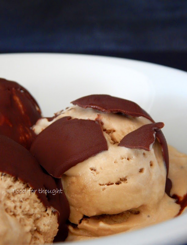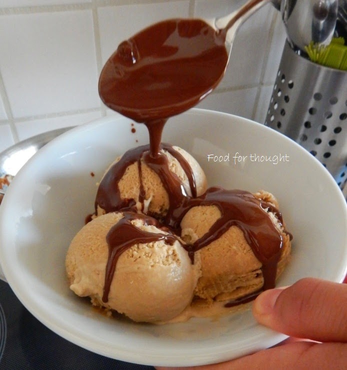 Επέλεξα να συνδυάσω τη σάλτσα αυτή, με παγωτό μόκα που το είχα στο μυαλό μου πολύ καιρό. Με την πρώτη μπουκιά, πριν ακόμα το καταπιώ σκέφτηκα τι καλά που έκανα!!!!! Αξεπέραστος συνδυασμός. Το παγωτό ήταν ελαφρύ, άγλυκο, χωρίς να σε λιγώνει στο ελάχιστο με μια αδιόρατη αίσθηση καφέ να αφήνει στο στόμα η κάθε μπουκιά και το ρούμι να αχνοφαίνεται κάπου στο βάθος! Όλα στο τοσο όσο!!!! Ήταν από τα καλύτερα παγωτά που έχω φτιάξει και ο συνδυασμός του με τη σάλτσα σοκολάτας το απογείωσε!