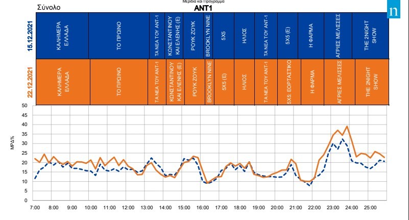 Αν κάτι από το πρόγραμμα του ΑΝΤ1 της Τετάρτης 22 Δεκεμβρίου πρέπει να συζητιέται δεν είναι το σκυλοφάγωμα στο ριάλιτι «Η φάρμα»- πόσα ανάλογα κανιβαλικά να συμβαίνουν σε τακτική βάση- αλλά η «εκτόξευση» που κατέγραψε η Nielsen Audience Measurement στην τηλεθέαση της σειράς «Άγριες μέλισσες».