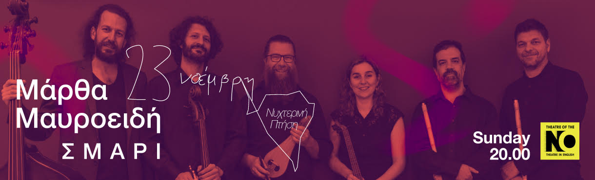 Το μουσικό σύνολο «Σμάρι» έρχεται στη σκηνή του THEATRE OF THE NO, την Κυριακή 23 Νοεμβρίου στις 20:00, προσκαλώντας το κοινό σε μια μαγευτική «Nυχτερινή πτήση» στα μουσικά τοπία της Ανατολικής Μεσογείου. Ένα σύνολο μουσικής δωματίου που συνδυάζει παραδοσιακά και κλασικά όργανα, αφουγκράζεται τις μουσικές του κόσμου και τις τραγουδάει ψιθυριστά σε μία μυσταγωγική συναυλία. Το «Σμάρι» αποτελείται από έξι μουσικούς που αντλούν επιρροές από την παραδοσιακή ελληνική, την αραβοπερσική και την κλασική μουσική.