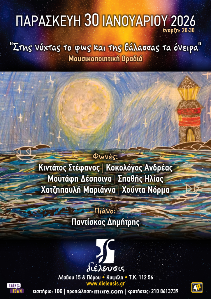 Μια πρόσκληση να σταθούμε για λίγο, να ακούσουμε, να νιώσουμε και να ονειρευτούμε εκεί όπου το φως, ακόμη και μέσα στη νύχτα, γίνεται έμπνευση.