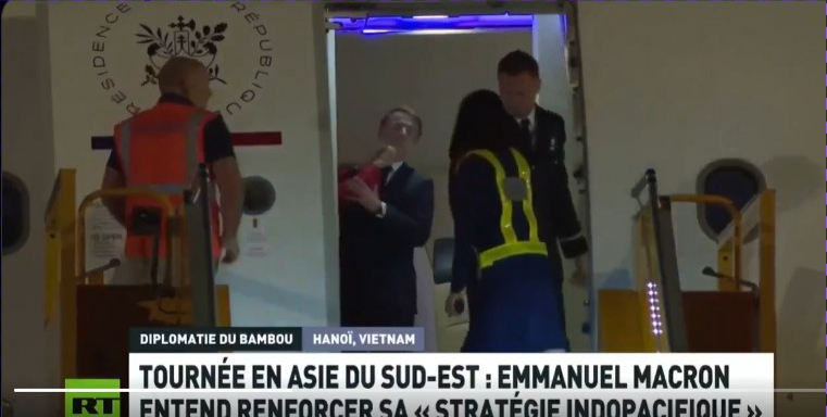 Όπως φαίνεται από το βίντεο, το προεδρικό αεροπλάνο μόλις είχε προσγειωθεί στο Ανόι του Βιετνάμ και ο Εμανουέλ Μακρόν στεκόταν στο άνοιγμα της πόρτας για να βγει από αυτό.