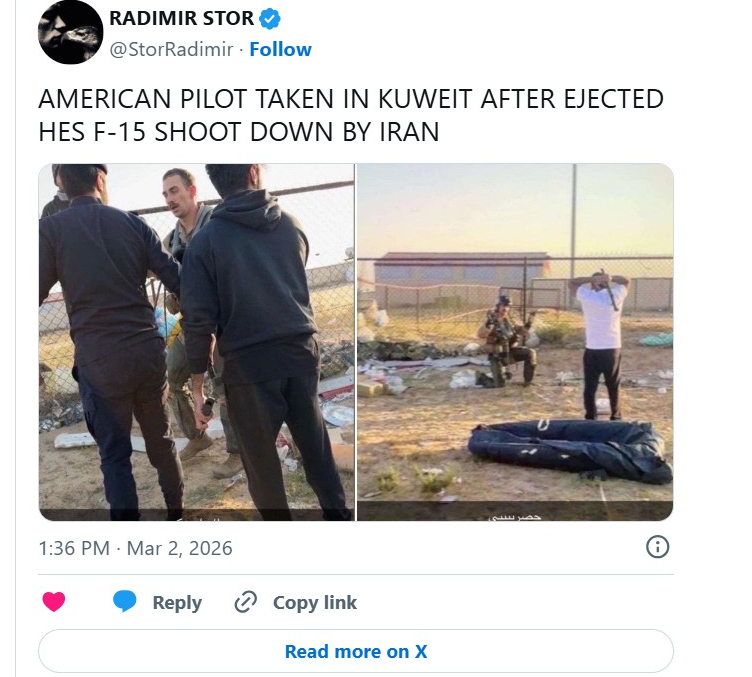 Σε ξεχωριστό βίντεο που δημοσιοποιήθηκε, εμφανίζεται ο πιλότος να έχει περισυλλεγεί από πολίτες στο Κουβέιτ, χωρίς μέχρι στιγμής να έχουν δοθεί περισσότερες πληροφορίες για την κατάσταση της υγείας του ή για τις ακριβείς συνθήκες του περιστατικού.