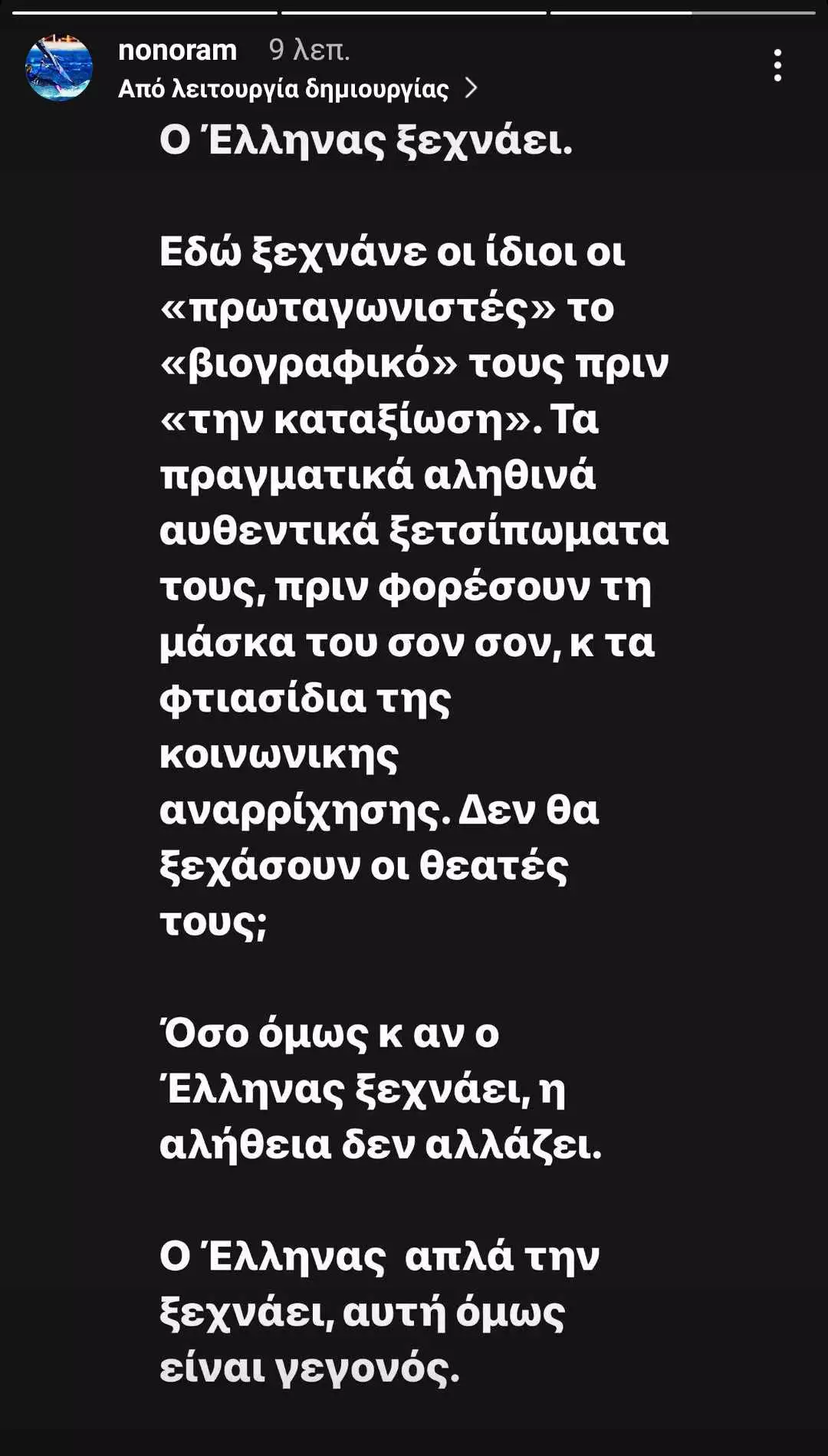 «Ο Έλληνας ξεχνάει. Εδώ ξεχνάμε οι ίδιοι οι «πρωταγωνιστές» το «βιογραφικό» τους πριν την «καταξίωση».