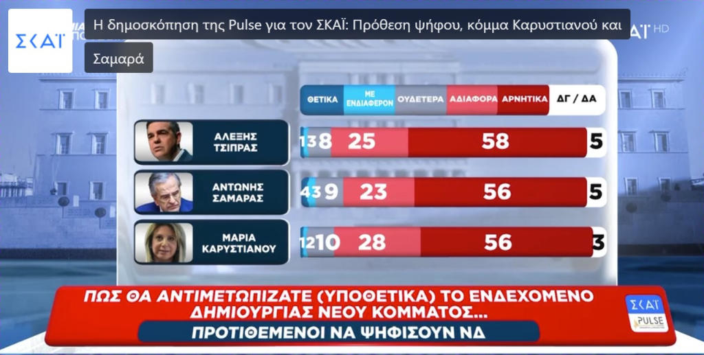 Μιλάμε για την δημοσκόπηση που παρουσιάστηκε εχθές στην τηλεόραση του ΣΚΑΪ από την Pulse