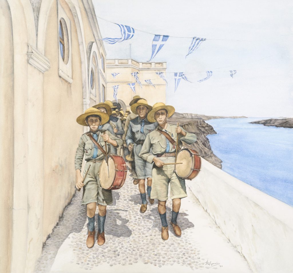 Μέσα από 15 υδατογραφίες, η Αρτεμις Χατζηγιαννάκη ερευνώντας παλιές φωτογραφίες, μαρτυρίες και τεκμήρια, αποτυπώνει το εγγύς παρελθόν της Σαντορίνης που εν μέρει παραμένει εναργές στις κοινότητες του νησιού. Οι παραδόσεις, η αμπελοκαλλιέργεια, η αρχιτεκτονική, οι τελετουργίες και τα έθιμα συνθέτουν ένα εικαστικό αλλά και ανθρωπολογικό σύμπαν.