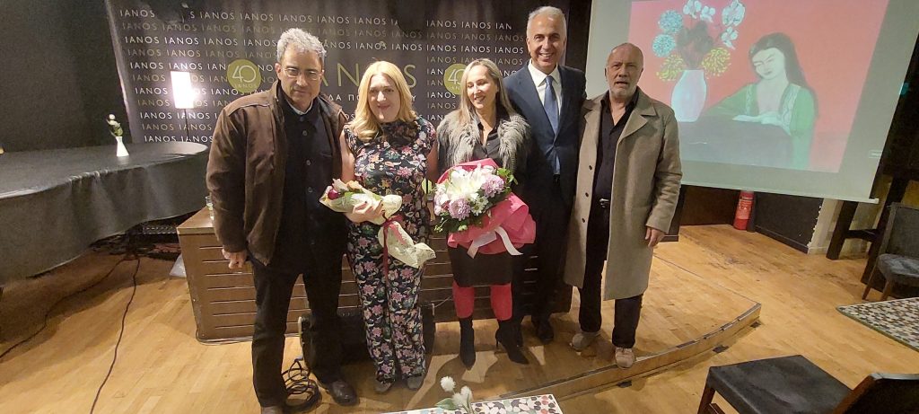 Για την δημιουργό και το έργο της έχουν αναφερθεί οι : Γιάννης Σμαραγδής, Ακαδημαϊκός- Σκηνοθέτης, Όλγα Καββαδία, γιατρός, Σταύρος Δεληγιάννης, ιδρυτής του εικαστικού θεσμού ΤΕΧΝΗΣ ΦΛΟΓΑ, Μίμης Τσακωνιάτης, συγγραφέας- κριτικός κινηματογράφου. ΄Έκπληξη της βραδιάς υπήρξε το κάδρο με την αφίσα της έκθεσης του Διεθνούς εικαστικού θεσμού ΤΕΧΝΗΣ ΦΛΟΓΑ στην οποία έλαβε μέρος στην Κέρκυρα το 2021 γεγονός που σηματοδότησε την συνέχεια της στα εικαστικά δρώμενα. Της το παρέδωσε ο ιδρυτής του Εικαστικού θεσμού ΤΕΧΝΗΣ ΦΛΟΓΑ Σταύρος Δεληγιάννης.