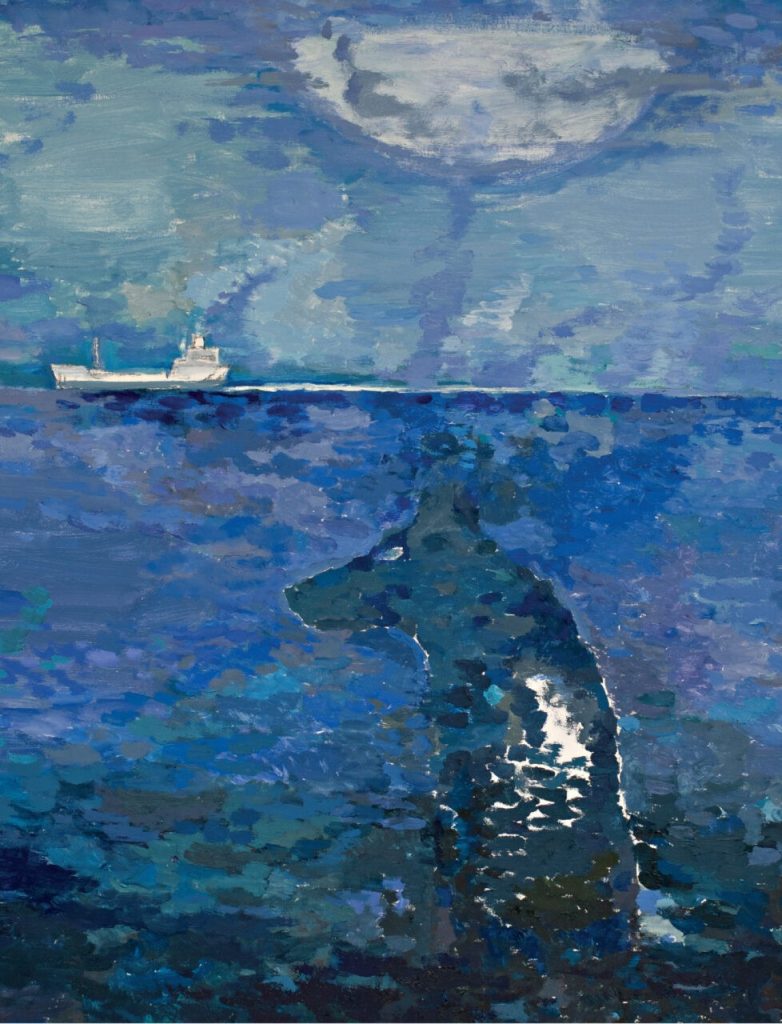 Από την έκθεση δεν μπορούσαν να λείπουν τα βασικά μοτίβα του Σεβαστάκη, αυτά που εμμένουν στο έργο του και το φωτίζουν με ένα αλλόκοτο φως: λύκοι που κολυμπούν ή αναδύονται μέσα από τη θάλασσα, ενώ στον νυχτερινό ουρανό δεσπόζει η σελήνη. Μυστικά τοπία απειλής, φόβου και επιφυλακής.                                  Η πολυσήμαντη εικαστική γραφή του Δημήτρη Σεβαστάκη ενδυναμώνει το ανθρώπινο γίγνεσθαι και προχωρά το ανθρώπινο ιδεώδες καθώς διεκπεραιώνεται εμφορούμενη μέσα από την αντίθεση της ρευστότητας και την λύση των παρεμβολών .