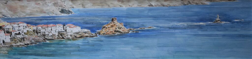 Κάθε τέτοια στιγμή γεννιέται ενθουσιωδώς η επιθυμία του για ζωγραφική. Τέτοιες εικόνες αποτέλεσαν έναυσμα του εγχειρήματος μιας ζωγραφικής αφήγησης της συνάντησης του ζωγράφου Γιώργου Παπασάικα με το πολυποίκιλο σκηνικό του νησιού της Άνδρου, το οποίο επισκέφτηκε βοηθώντας τον γλύπτη πατέρα του, Βασίλη, στην τοποθέτηση του αγάλματος «Η Γυναίκα του Ναυτικού».