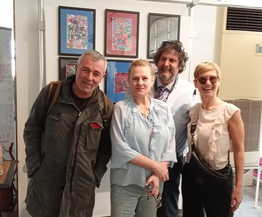 Την διοργάνωση της έκθεσης είχε ανέλαβε η καταξιωμένη καλλιτεχνική ομάδα “ΤΕΧΝΗΣ ΦΛΟΓΑ”, που η παρουσία της άνω των 25 ετών στον χώρο των τεχνών και των γραμμάτων στην Ελλάδα και στο Εξωτερικό είναι τεράστια και ιδιαίτερα σημαντική. Για την έκθεση που επιμελήθηκα και ξενάγησα σε αυτήν τις μέρες της λειτουργίας της μαθητές σχολείων και παρευρισκόμενους έχω επισημάνει μεταξύ άλλων: ‘’ Στην συνομιλία που παρουσιάστηκε η τέχνη μέσα από την πολυμορφία της καλλιτεχνικής γλώσσας διαρκώς πρότεινε το δικαίωμα στο όνειρο. Έδινε την δυνατότητα στους θεατές χωρίς περιορισμούς ,να φανταστούν διαφορετικά την καθημερινότητα. . Οι μορφικές αλληλουχίες στον πραγματικό χώρο και χρόνο αποκάλυπταν πτυχές της υλικής και πνευματικής διάστασης καθώς της ονειρικής εικόνας. Απεικονίζονταν συλλήψεις που αναδύονταν από την κρυστάλλωση της υφής και μετέφεραν σε ένα κόσμο φανταστικό. Οι εικόνες μετατράπηκαν σε σύμβολα με ειδική υπόσταση και ικανότητα για να στηρίξουν τις πρωτότυπες αισθαντικές ενέργειες. Πρόκειται για εμβληματικές , μοναδικές και πανέμορφες διαστάσεις που διέθεταν την πρωτοβουλία της εκποίησης. Εμπεριείχαν τις ιδιάζουσες χαρακτηριστικές και ευρηματικές εκφάνσεις μιας καινοτόμου δημιουργίας που κινούνταν με δεσπόζουσα καίρια δύναμη προς την χροιά εμβέλειας του προσδιορισμού. Τοποθετώντας την προσθήκη της έντονης χρωστικής ουσίας στις σχεδιαστικές αποτυπώσεις αναφορικά και αναλυτικά οι δύο καλλιτέχνιδες ενορχήστρωναν ιδιότυπα απεικάσματα με την παρεμβατική και παλμική θέρμη ενός ευρύτατου φάσματος της έμμεσης και της κυρίαρχης ζωτικότητας. Η παραστατικότητα τους απέναντι στην προσθετική μέθοδο της περιγραφής και στην διαχρονική χροιά της ενατένησης προσκάλεσε το κοινό σε μια περιδιάβαση από προικισμένες καταθέσεις . Σε ένα περιβάλλον που μετέτρεπε την ατμοσφαιρική φυσική αισθαντικότητα με παραθετική και ιδεογραφική έμφαση σε αυθεντική ιδεογραμμική λήψη και που σχηματικά δρούσε παράλληλα με την ουσιαστική και την αυστηρή σηματοδότηση της κωδικοποιημένης έρευνας . Με την εννοιακή σαφήνεια και με την ευκρινή ακρίβεια απέναντι στο ύφος του αναδυόμενου προσανατολισμού και του ενστικτώδους προβληματισμού. Οι μνημειακές διαστάσεις των πινάκων είχαν σκοπό να μεταλλάξουν έμπρακτα την διαδρομή της άμεσης εκφραστικής δυναμικής που κατέληγε ευπρόσδεκτα σε εξιδανικευμένες αποκλίσεις . Oι ευειδείς τεχνοτροπίες βέβαια άγγιζαν τα φευγαλέα οράματα της εκλεπτυσμένης βιωματικής θεματολογίας και των περιγραφών. Με προχωρημένη μετάλλαξη τα ευνόητα και εύληπτα μηνύματα σκιαγραφούσαν πολυκύμαντα και πολυσήμαντα έναν όμορφο κόσμο που προσδιορίζονταν και προορίζονταν αυτούσια από την ψυχολογική διευθέτηση των ποικίλων απεικονίσεων προς τα μονοπάτια της τεχνικής κάλυψης. Συμπερασματικά θέλω να τονίσω ότι οι πολυεπίπεδες εκφάνσεις που παρακολουθήσαμε στις πολυδιάστατες και πολυποίκιλες καταθέσεις αποτέλεσαν έναν οδηγό για τις επιθυμίες και τις προσδοκίες του κάθε επισκέπτη . Ενεργοποίησαν αέναα την συλλογική συνείδηση και την προικισμένη γλώσσα που εκρήγνυται δυναμικά και καταλήγει στην πρωτοφανή ποιοτική δόμηση. Με ελπίδα, προσδοκία και αισιοδοξία προσέγγισαν την θεραπευτική ιδιότητα. Τα καθηλωτικά επαρκή μοτίβα που συγκροτήθηκαν τόσο από την Γεωργιάννα Νταλάρα όσο και από την Δέσποινα Σταθάκη υπήρξαν δοχεία ε