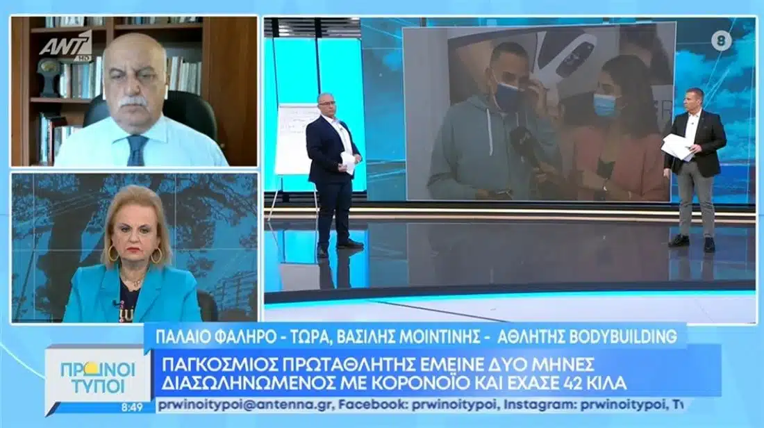 «Μετά από 3 ημέρες αγωγής στο σπίτι, το οξυγόνο μου πήγε στο 70. Πήγα στο Νοσοκομείο «Σωτηρία» και με έβαλαν κατευθείαν στην Εντατική. Φοβήθηκα, δεν ήθελα να το κάνω», είπε στον ΑΝΤ1, χθες Σάββατο 6/11, και την εκπομπή «Πρωινοί Τύποι» ο αθλητής του bodybuilding, Βασίλης Μοϊντίνης.