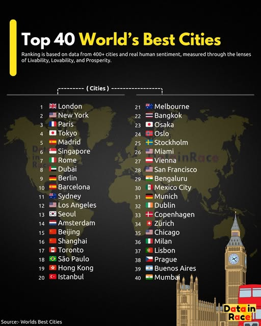 Αυτή η κατάταξη αναδεικνύει τις πόλεις που προσφέρουν το ισχυρότερο μείγμα ποιότητας ζωής, πολιτισμού και οικονομικών ευκαιριών.