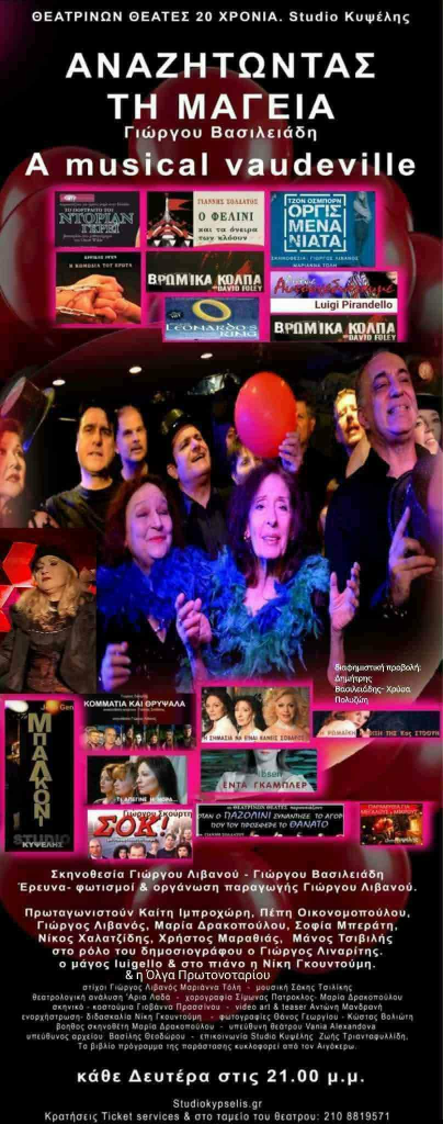●Η αγαπημένη επετειακή παράσταση, ΑΝΑΖΗΤΩΝΤΑΣ ΤΗ ΜΑΓΕΙΑ 20 χρόνια Θεατρίνων Θεατές , σε επιμέλεια κειμένων Γιώργου Βασιλειάδη μας Α musical vaudeville!