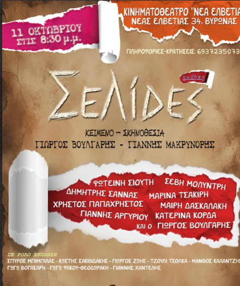ΠΑΡΑΣΤΑΣΕΙΣ: ΣΑΒΒΑΤΟ 11 ΟΚΤΩΒΡΙΟΥ 2025