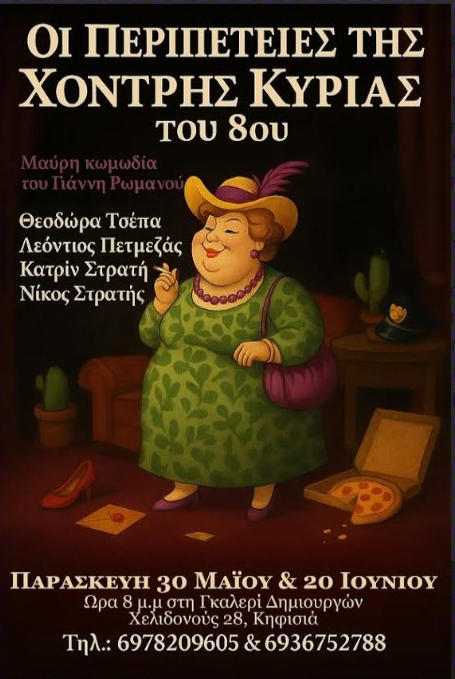 Είναι μια καθόλα κανονική, όμορφη, ερωτική γυναίκα με κάποιο μεταξύ άλλων εμφανές ελάττωμα. Είναι κάπως ευτραφής . Στην ιδιάζουσα καθημερινότητα της υφίσταται τα κλασσικά πειράγματα και το γνώριμο bullying ,πράγματα απαράδεκτα που ωστόσο εμβόλιμα της τονίζουν και της υπενθυμίζουν κάθε τόσο την διαφορετικότητα της από τους άλλους ανθρώπους .Βιώνει αλγεινές στιγμές και γυμνές ώρες που σίγουρα την ενοχλούν αφάνταστα και την επηρεάζουν ψυχολογικά όπως εξομολογείτε . Αλλά κάποτε ως εκ θαύματος έρχεται η Νέμεσις. Χέρι του διαβόλου; Δικαιοσύνη; Από μηχανής Θεός; Σκοτεινός Θεός που δεν δικαιούται ενοχής ;Κανείς δεν μπορεί να πει με σιγουριά κάτι και να τοποθετηθεί απόλυτα . Κυρίως όχι, ο υπαστυνόμος Ιγνάτιου της περιοχής του κάτω Μπραχαμίου που ανακρίνει την κυρία αλλά που δεν πείθεται με τίποτα ότι τα τρία φρικτά ατυχήματα, που συνέβησαν στο διαμέρισμα της , είναι τελείως αθώα. Υπάρχουν αναπάντητα ερωτήματα και ερωτηματικά . Βέβαια μέσα από τα συμβάντα επί σκηνής οι θεατές έχουν ήδη ενημερωθεί και μάλιστα με λεπτομερή και αποκαλυπτικό τρόπο για τι πραγματικά εξελίχθηκε στο σπίτι αυτό στην διάρκεια των εσπερίδων που διαπράχθηκαν. Το τέλος μέσα από ενστάσεις, εντάσεις , παρεμβολές ,αστεία και άφθονο χιούμορ είναι φυσικά αίσιο !!!!