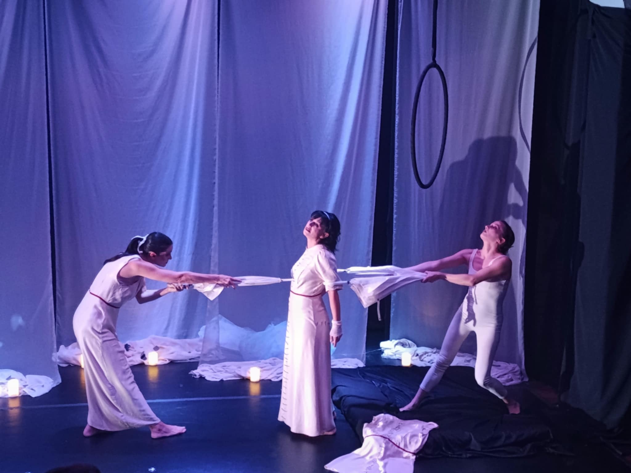 Επί σκηνής: Γεωργία Καραμέρου ,Μαρία Κατσιώνη ,Μαρίνα Κονταρίνη